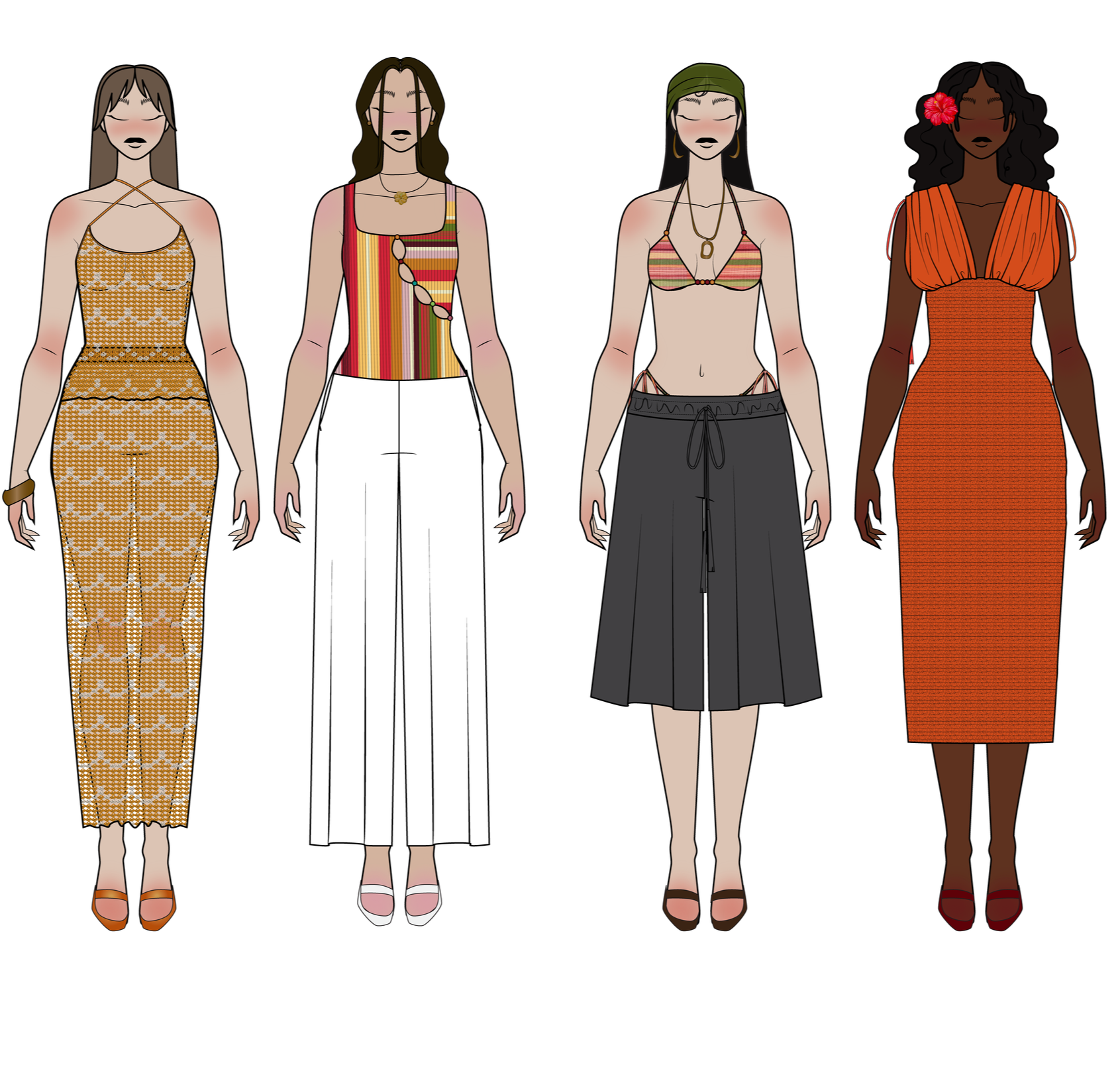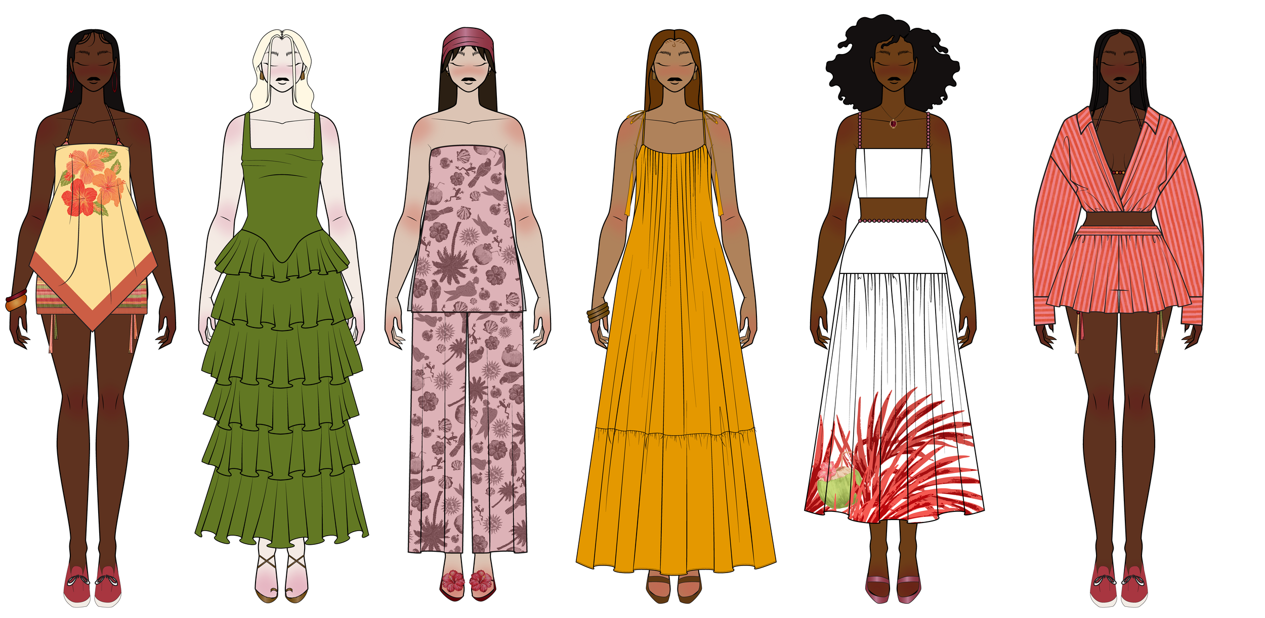 Sun on skin, color in motion. This collection is driven by a free-spirited muse who dresses with instinct and joy. Saturated hues, fruit-bright tones, and delicate floral prints echo warmth and abundance, while fluid silhouettes move effortlessly from day into night. Easy yet expressive, each look captures the rhythm of everyday moments—carefree, confident, and alive with the light of the sun.