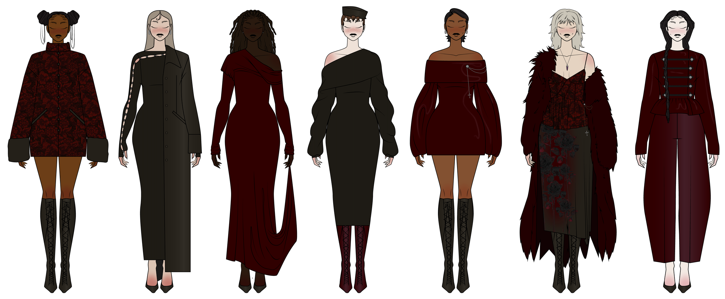laced up knee high boots step into the streets of england. The rosary dangles as she sways, and deep burgundy lace contrasts her atmosphere like a 17th century painting.