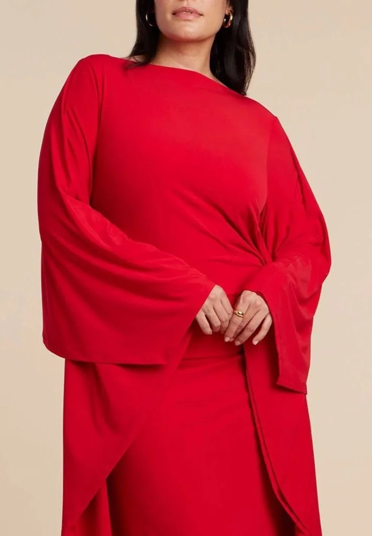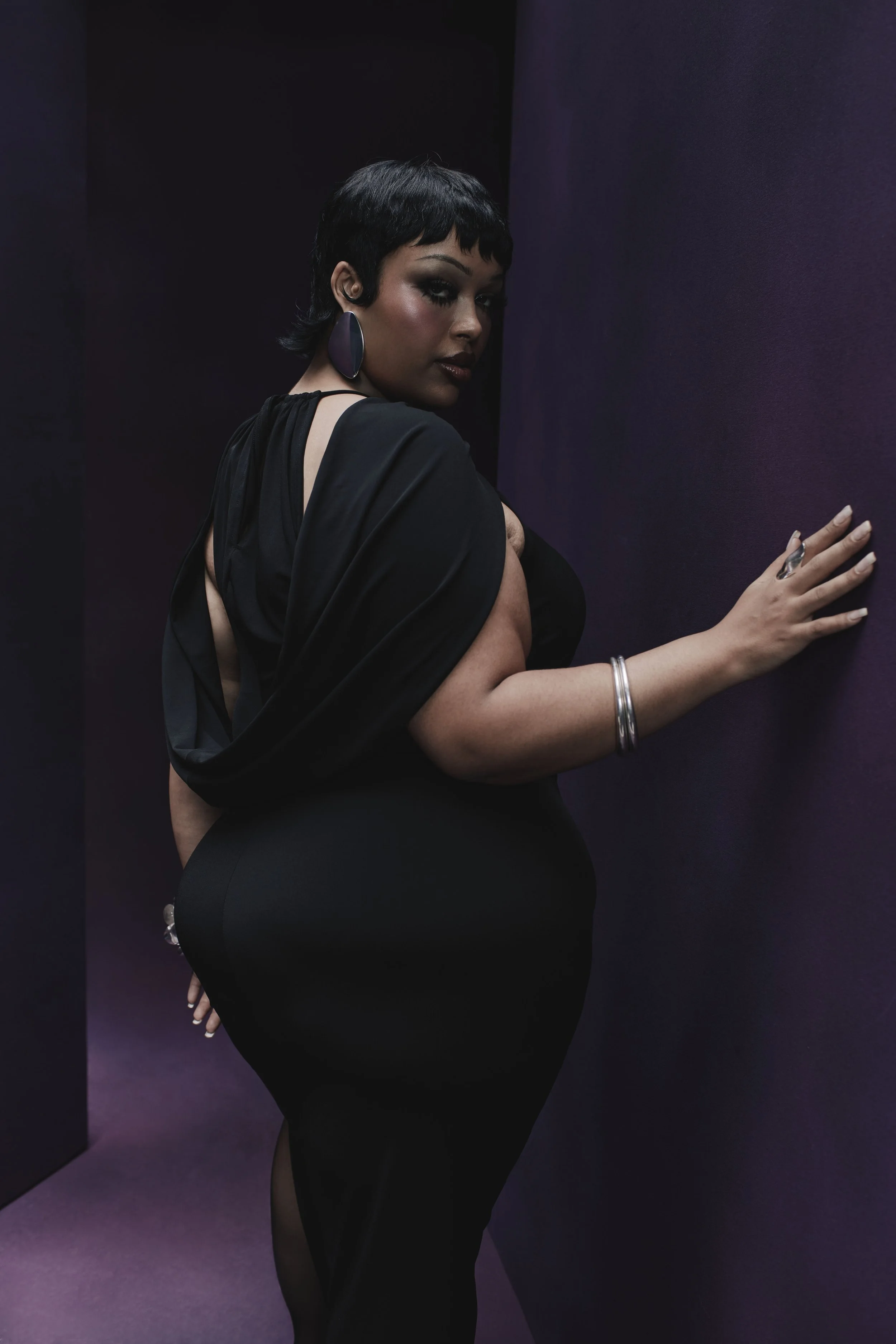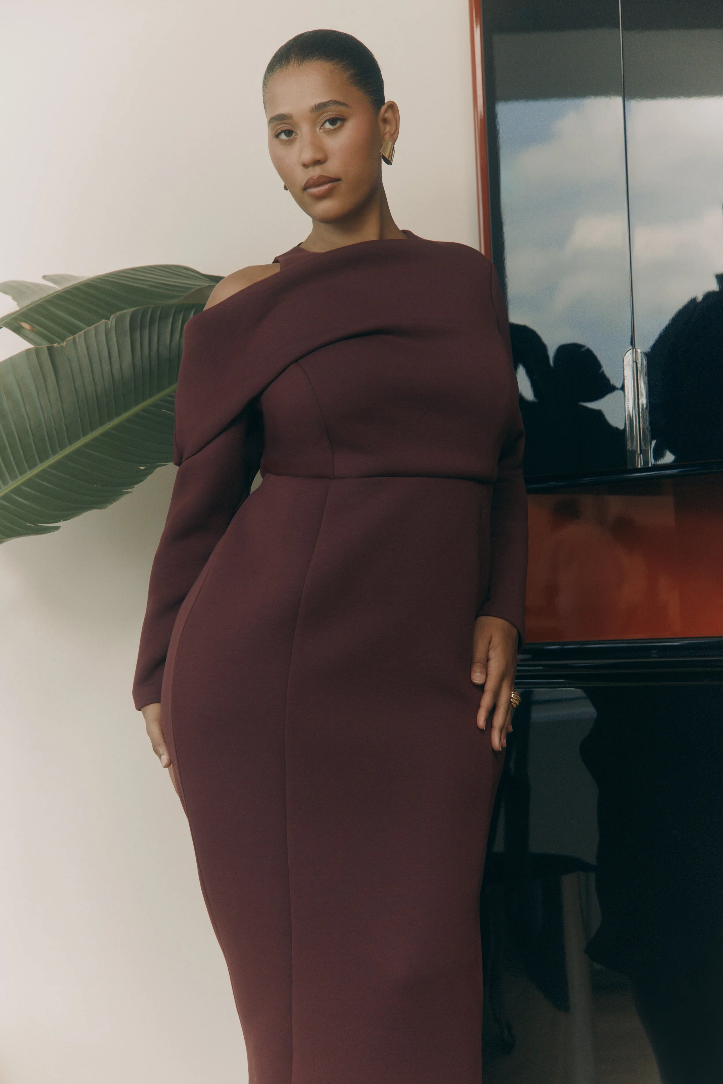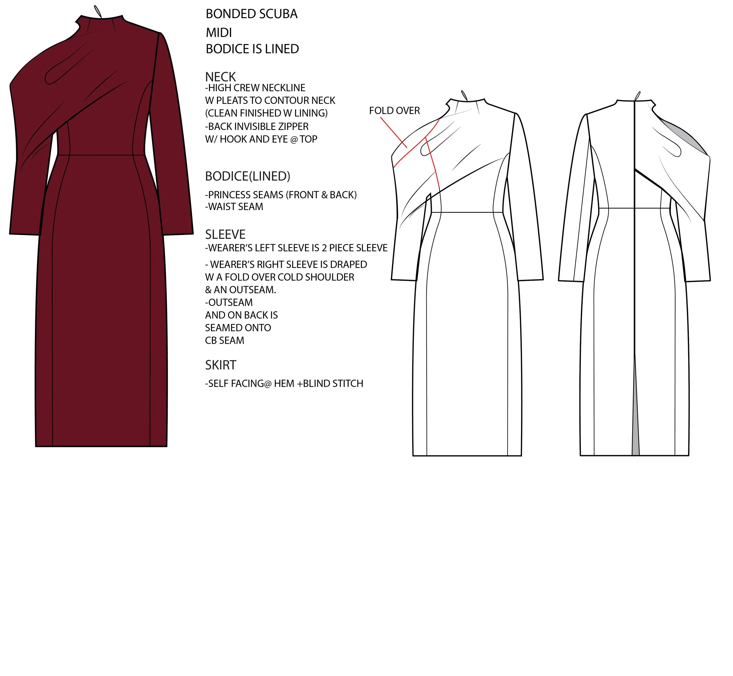 DRAPED COLD SHOULDER BONDED SCUBA DRESS - FALL 2025