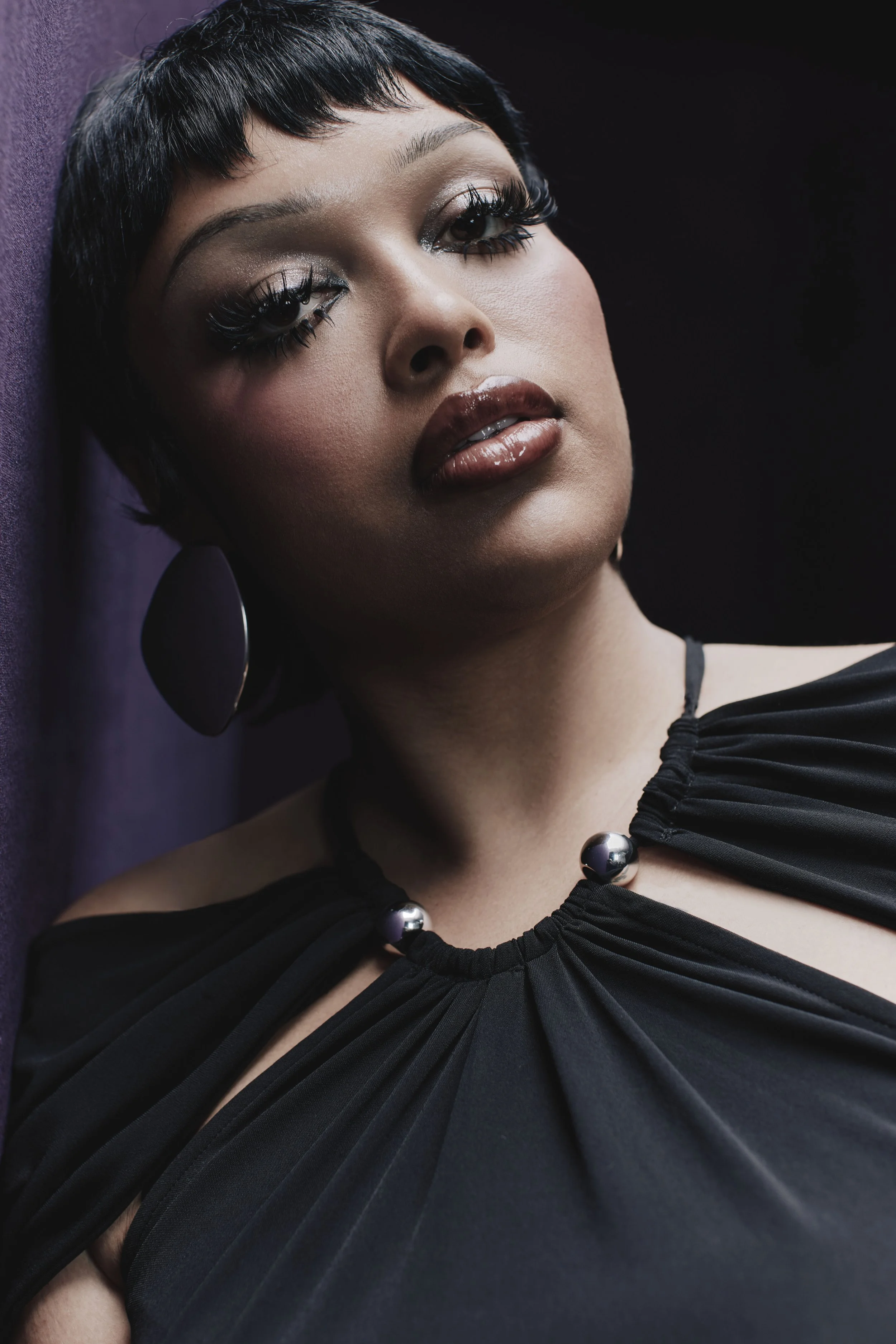 VELVET DRESS WITH BUBBLE PEPLUM - WINTER 2025