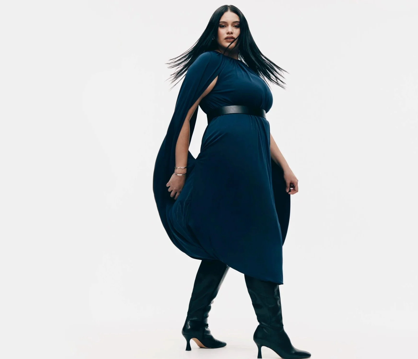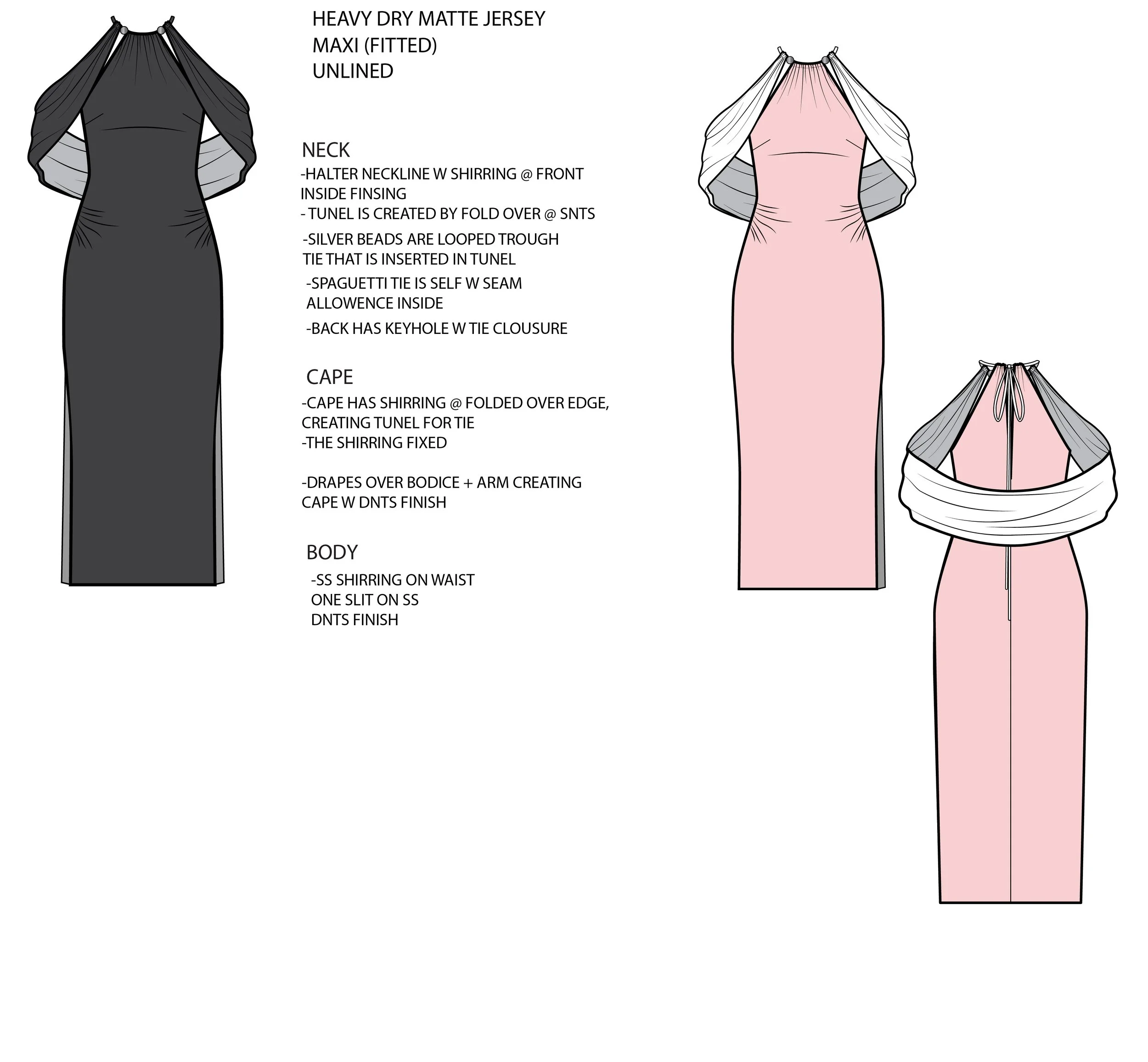 SILVER BEAD & CAPE DETAIL MAXI DRESS - FALL 2025