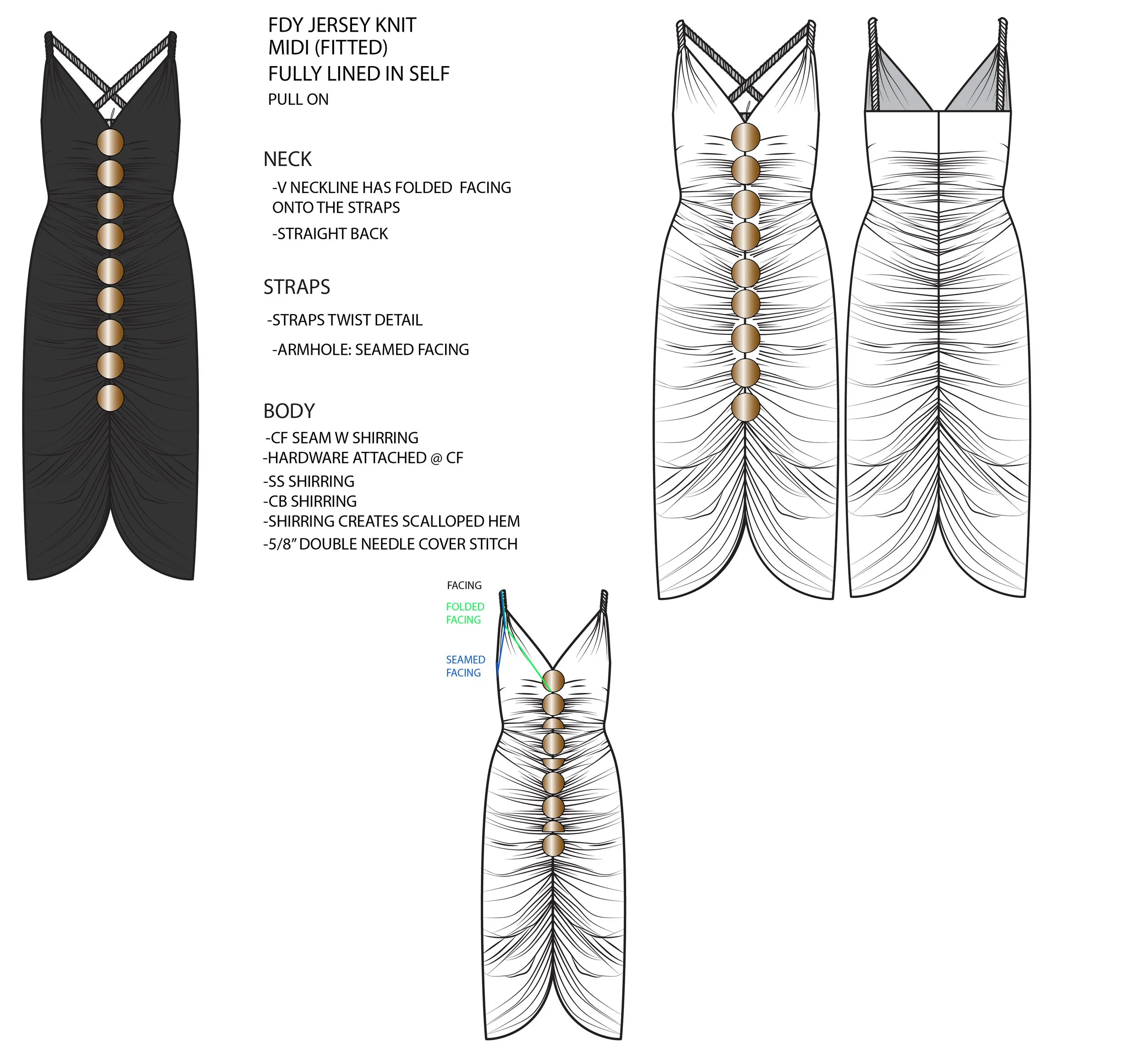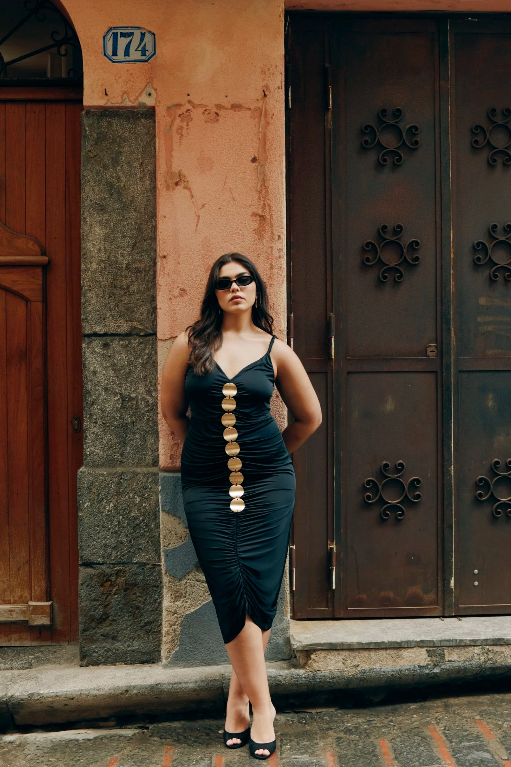 METAL DISC FRONT DRESS W SHIRRING - SUMMER 2025