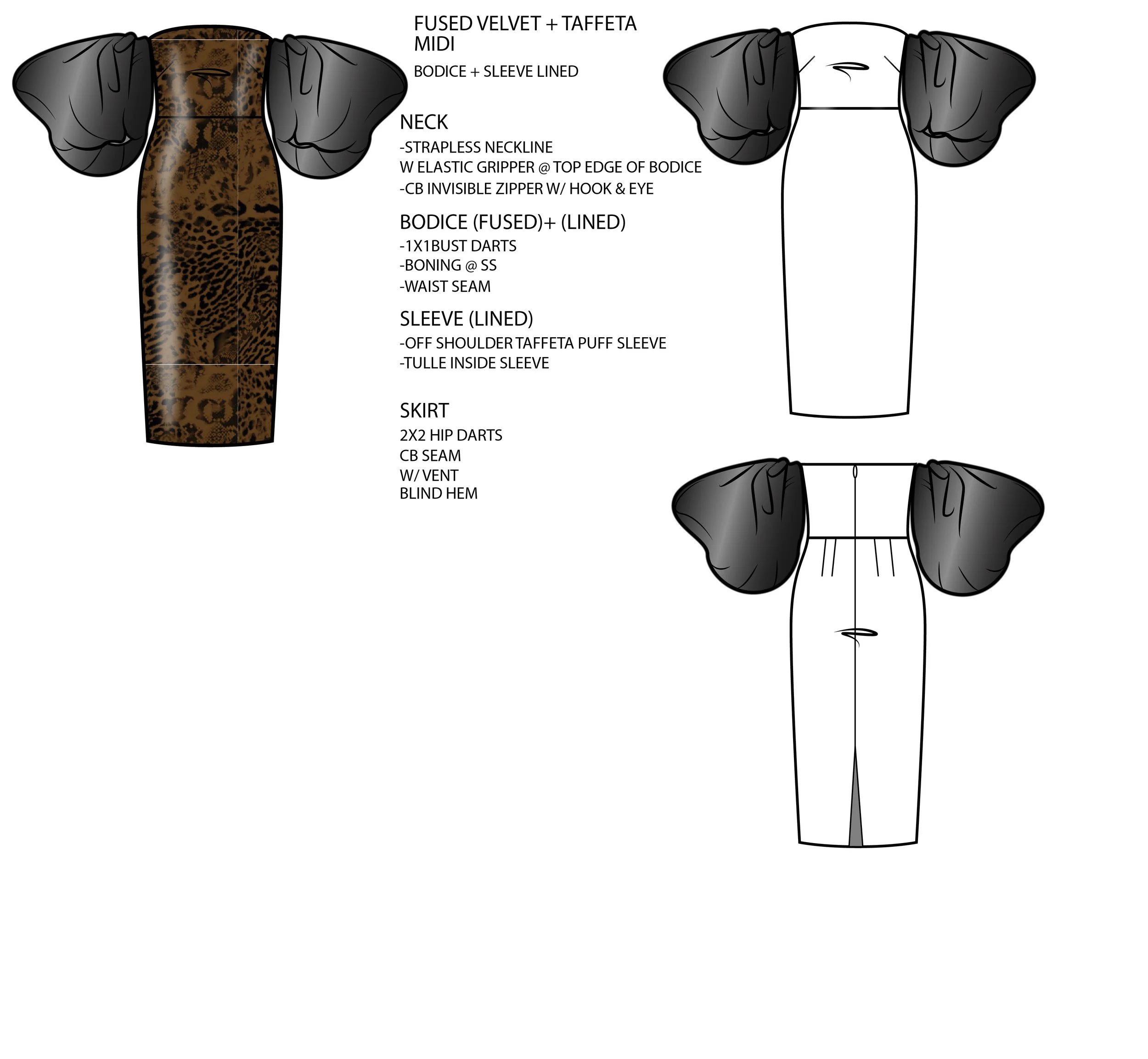 PRINTED VELVET DRESS W TAFFETA SLEEVE - FALL 2024