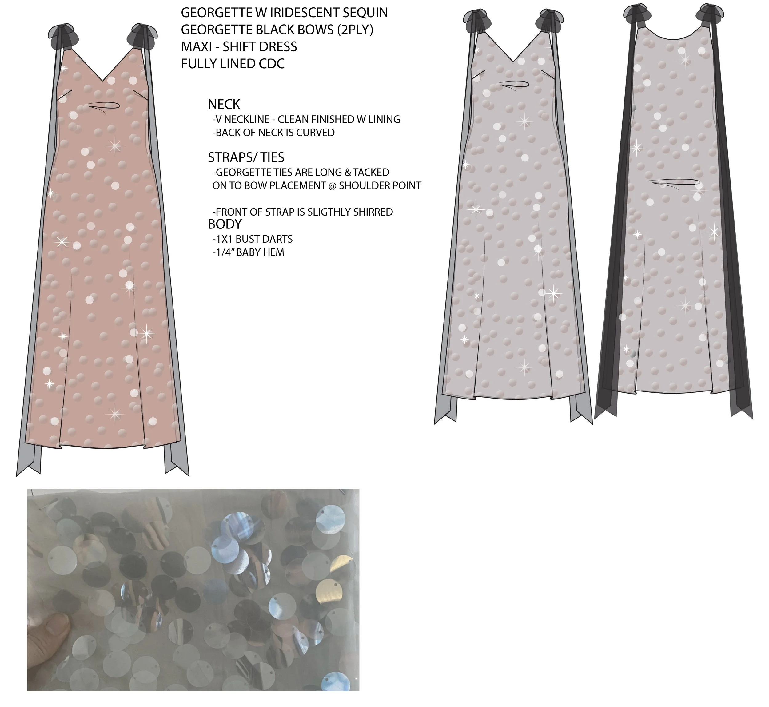 IRIDESCENT PAILLETTE DRESS WITH CONTRAST BOWS - WINTER 2024