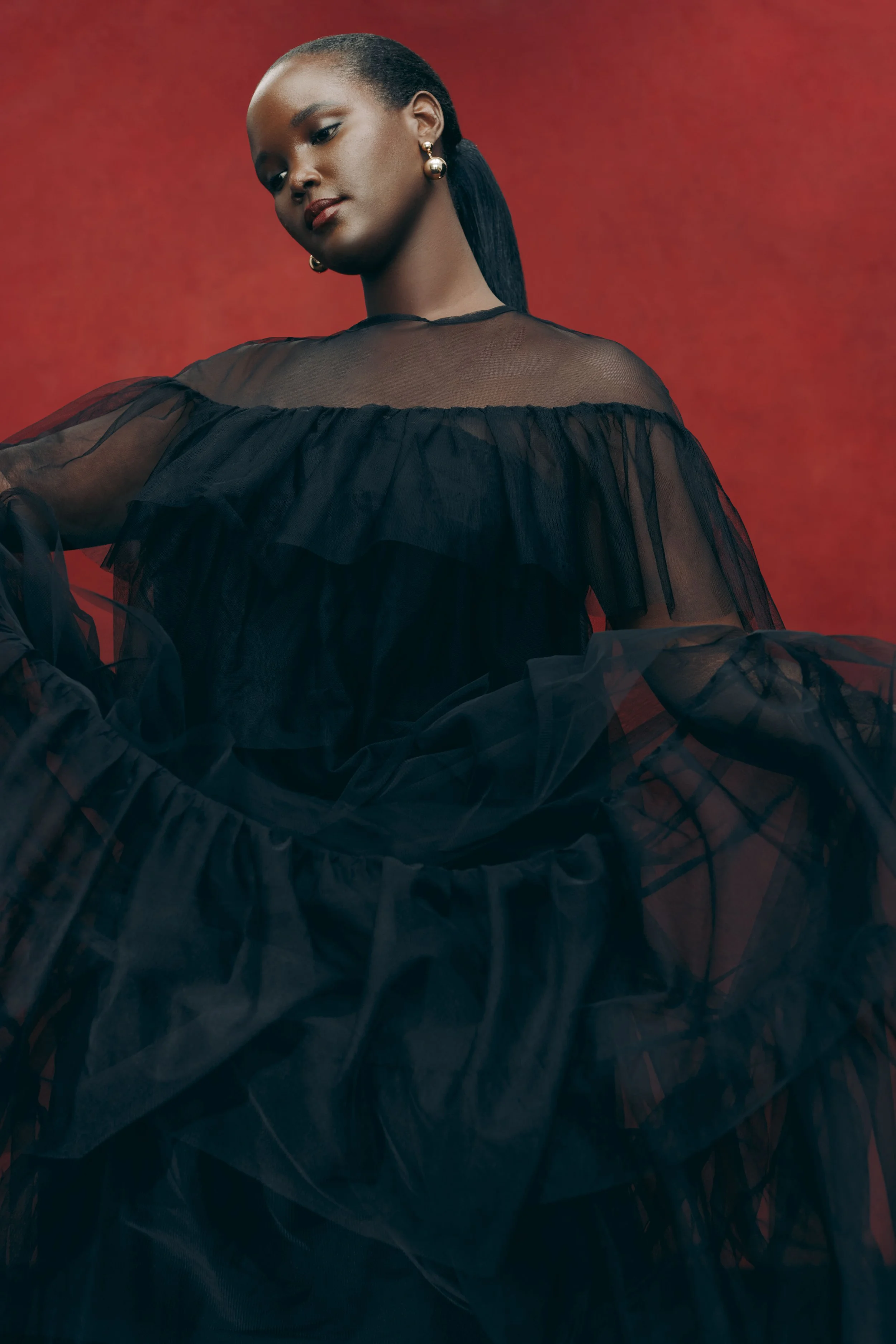 RUFFLE TULLE MAXI DRESS - WINTER 2024