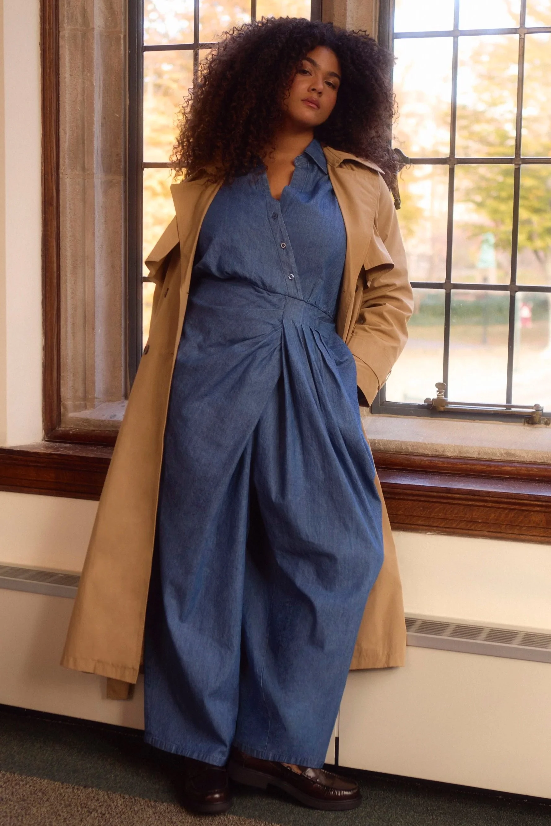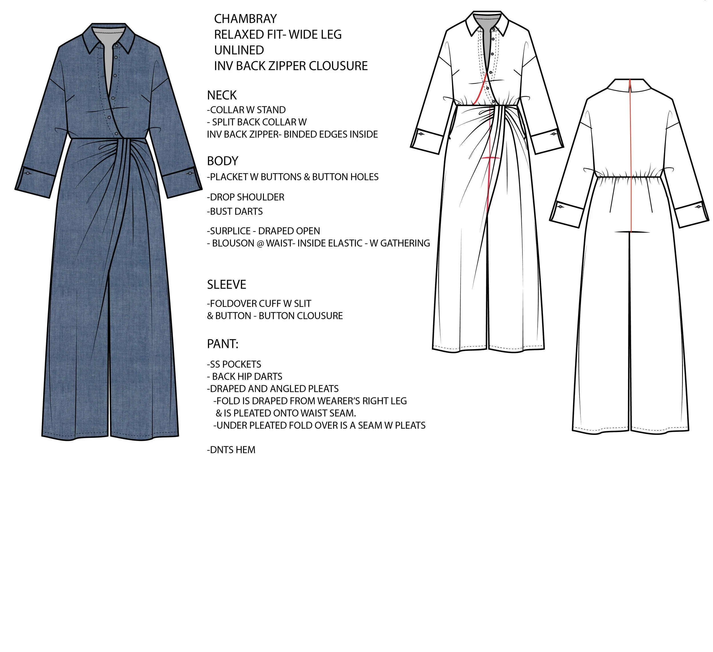 CHAMBRAY JUMPSUIT W PLEATED WAIST DETAIL - WINTER 2026