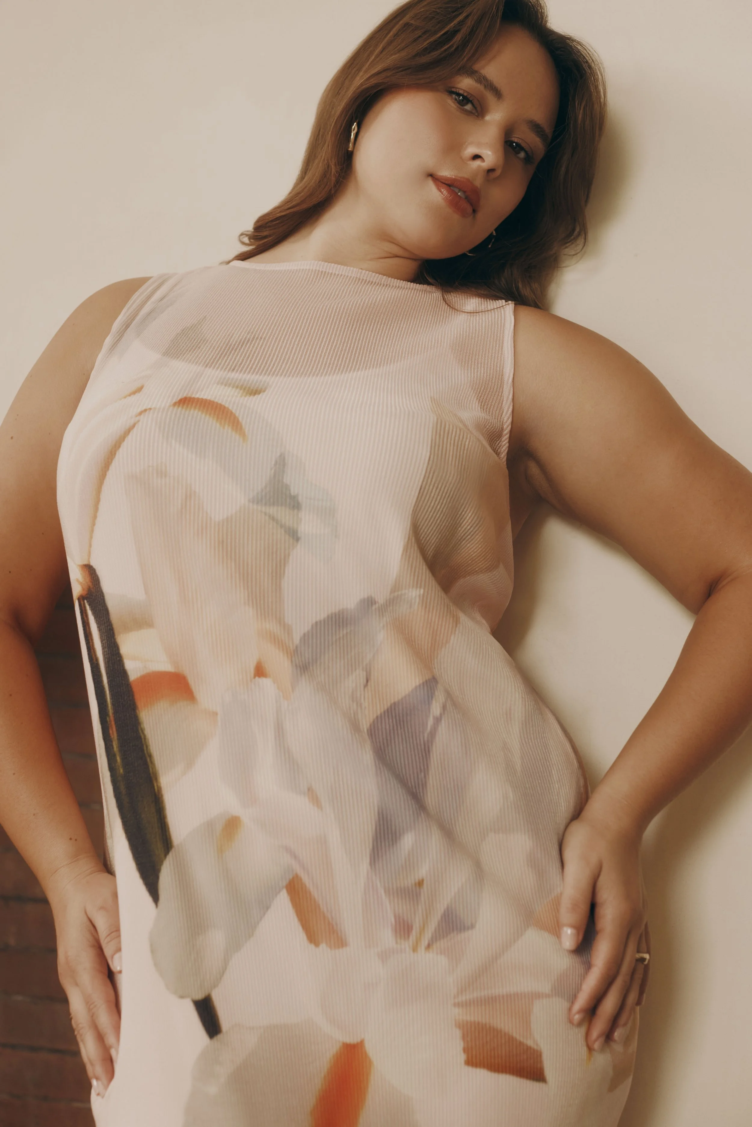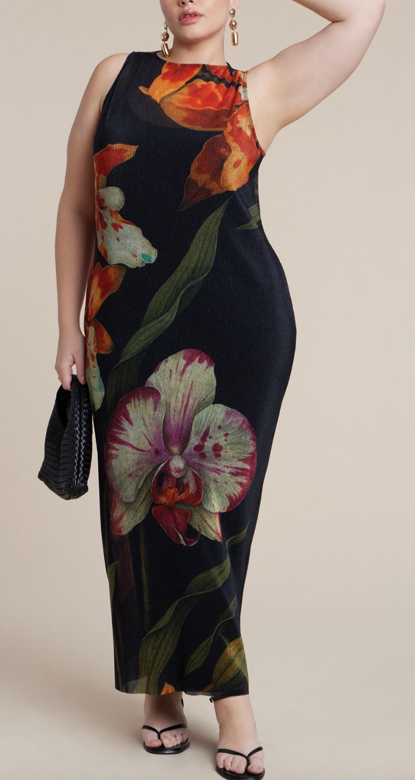 PRINTED PLEATED CHIFFON DRESS - SPRING 2025
